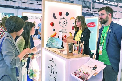 斯洛伐克展商向不雅众先容特色干果居品。本报记者 阮紫嫣摄/光明图片